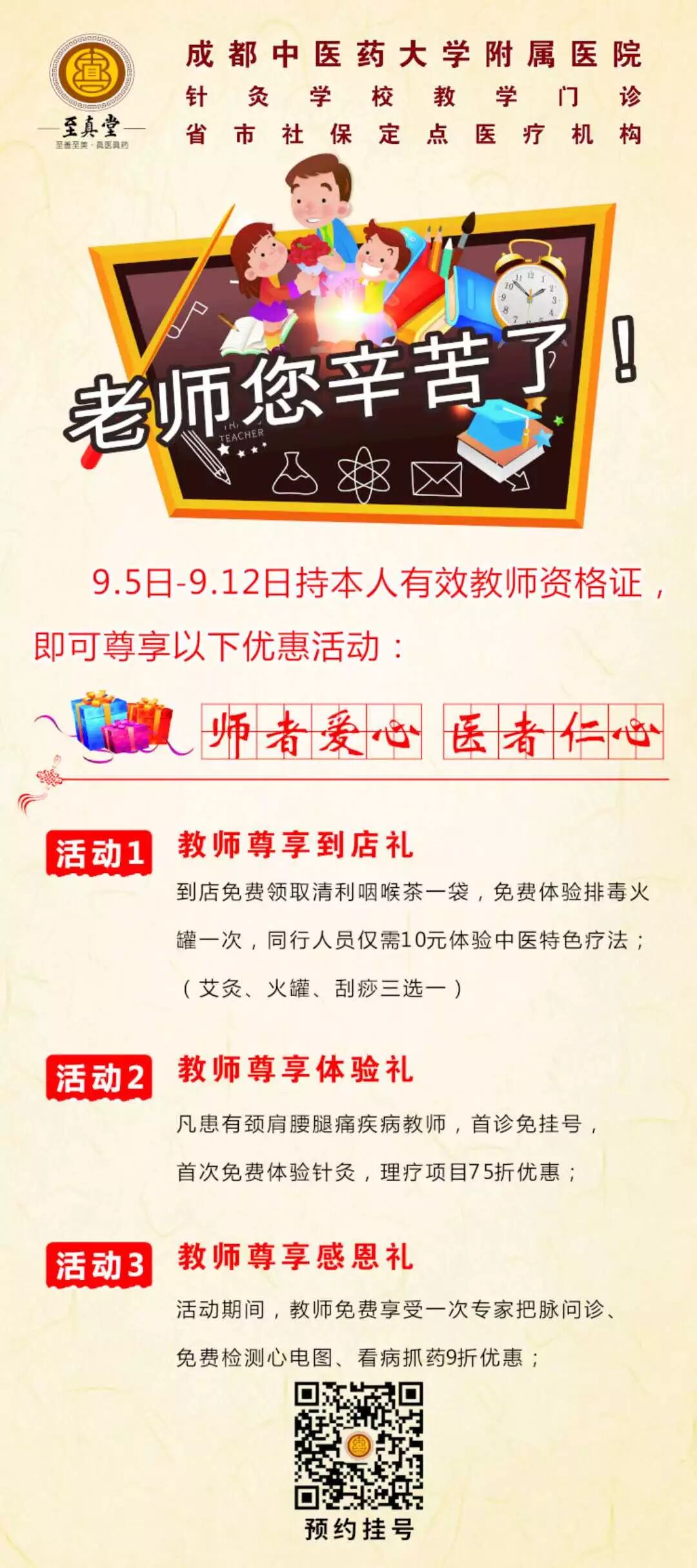 师恩难忘,成都中医药大学附院针灸学校至真堂门诊谢师恩推出福利活动