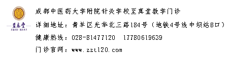 至真堂中医(青羊馆)地址:成都青羊区光华北三路184号(地铁4号线中坝站B出口) 预约电话:028-81477120